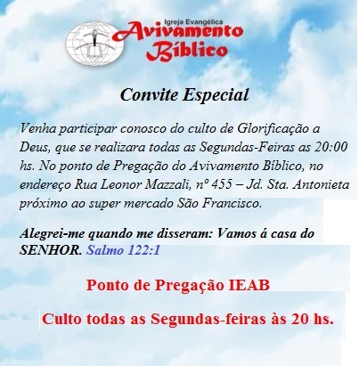 | Culto da Familia | Domingos | 19:30 as 21:00 hs | Sim |